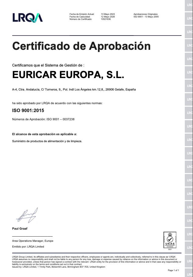 Es por ello por lo que Euricar Europa está constantemente preocupado por la mejora continua y así lo refleja en su sistema de calidad ISO 9001:2015.